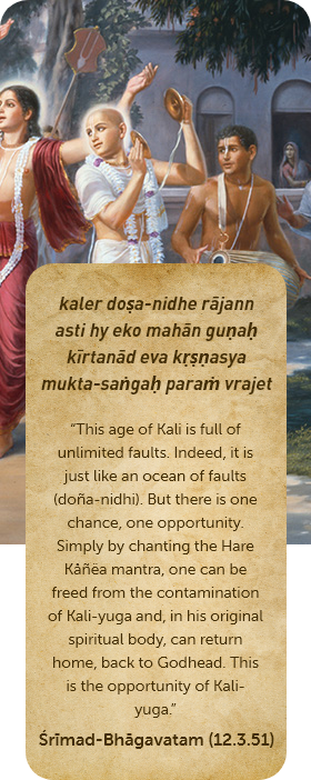 Kali-yuga. In an era marred by deficiencies, this method, advocated by Lord Chaitanya Mahaprabhu,
